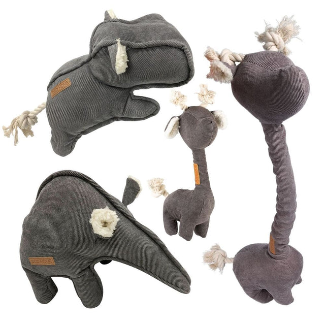Trendy Hundespielzeuge aus grauem Cordstoff